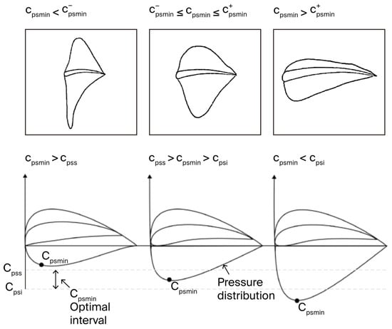 Recommended Cpmin ranges are specific for each application. For example, Cruz et al. [20] propose a range of from −0.8 to −0.4 for Nq = 278, while Sutikno [18] advocates from −2.25 to −1.25 for Nq = 102. This work selects the applicable range based on numerical validation to balance aerodynamic loading and loss mitigation. This ensures the blade cascade operates within thresholds that minimize boundary layer separation risks and excessive friction losses, as illustrated in Figure 5.