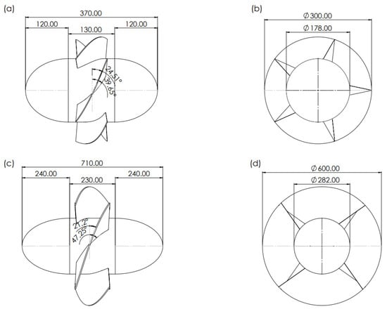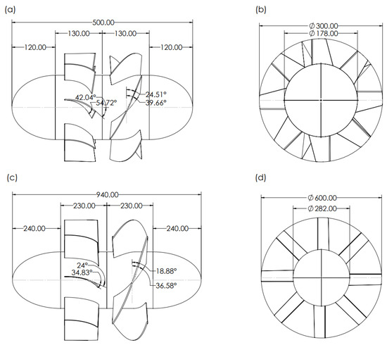 The turbine design integrates traditional turbine design methods, such as velocity diagrams [16], and an updated Cordier diagram customized for axial-flow turbines [17] with the minimum pressure coefficient criterion (Cpmin) to enhance hydraulic efficiency [18,19]. The Cp coefficient is defined by Equation (1).