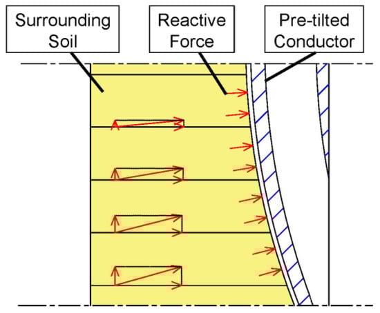 Contact and interaction between the conductor and soil under the condition of a pre-tilted conductor.