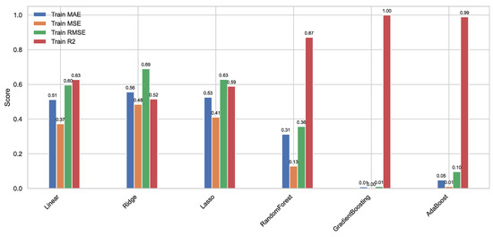 The selected hyperparameters were chosen for their direct impact on model complexity, generalization, and performance. For regularized linear models, Ridge and Lasso, the regularization strength “” controls the degree of penalty applied to large coefficients—helping to reduce overfitting, especially in small datasets. Smaller values allow more flexibility, while larger values enforce stronger shrinkage of less informative predictors. To further mitigate the risk of overfitting, all models were trained and evaluated using 5-fold cross-validation. In addition, regularization techniques (Ridge and Lasso penalties) and parameter tuning were applied to control model complexity and improve generalization performance, particularly given the small size of the original dataset.