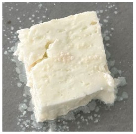 Visible spoilage of the cheese sample pieces was observed during storage. The most significant changes occurred in the cheese samples that were not layered with PLA films. By the sixth day, the cheese surface was largely covered with white colonies morphologically resembling yeast (Figure 9). Color changes to a yellowish hue were also evident, and by the end of the storage period (day 16), the texture of the cheese was completely disrupted (Figure 10).