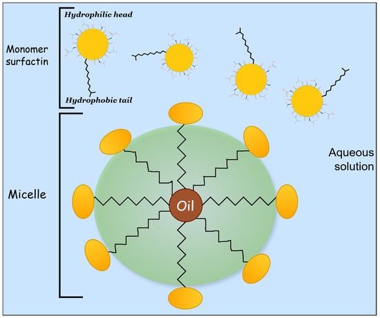 In detergents, biosurfactants can mimic traditional surfactants but with higher efficiency [34]. Alongside essential surface-active properties such as lowering surface tension and forming stable emulsions—key characteristics shared with conventional surfactants [35]—biosurfactants exhibit a significantly lower critical micelle concentration (CMC, the minimum concentration required for micelle formation). In general, biosurfactants exhibit CMC values 10 to 40 times lower than those of synthetic surfactants [33], meaning they require significantly lower concentrations to achieve the same surface tension reduction.
