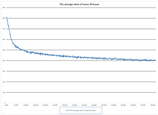 Analyzing Figure 3, we can see that with the increase in the number of training rounds, the loss value continues to decline, showing that, in the model for the continuous learning of features in the training data, the degree of fit to the training data is growing better and better. But in the iteration of 660,000 times or so, the loss value began to stop declining significantly; there are large ups and downs, and it even has a tendency to rise repeatedly. This is the model in the training-to-late stage of the overfitting situation; we can start to intervene with the early stopping method, to avoid the model continuing to learn from the noise and details of the training data, in order to improve the model’s generalization ability. By using the early stopping method, the model’s performance can be guaranteed while avoiding wasting training time.