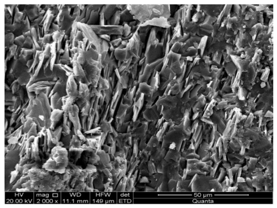 SEM photograph of vertically laminated shale in the direction of vertical lamination.