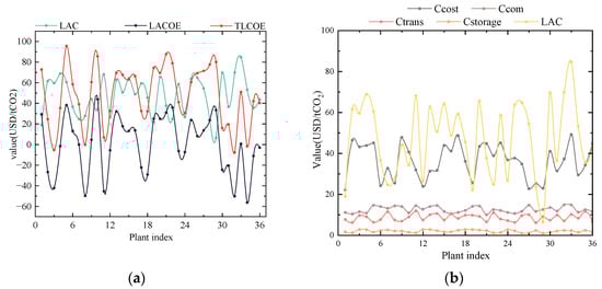 LAC quantifies the levelized cost of carbon (LAC) by assessing the unit cost of CO2 emission reductions, combining the full lifecycle cost of coal-fired power plant CCUS projects (including capture, transportation, storage, or utilization) with emission reduction benefits. Therefore, LAC serves as an emission evaluation indicator for the CCUS transformation of coal power plants.