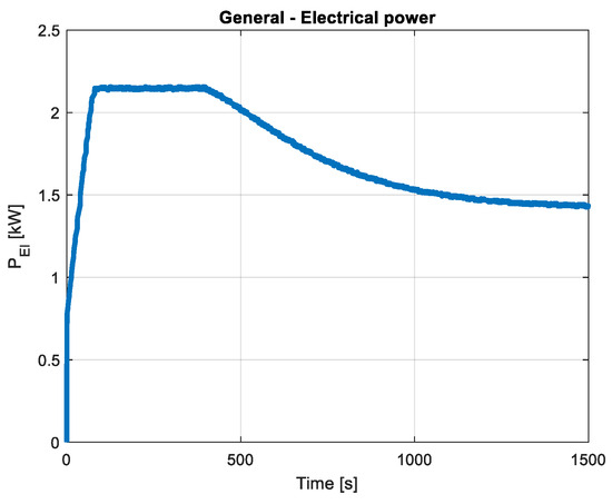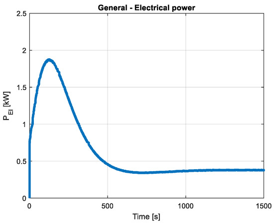 The analysis was conducted for two types of air conditioners: a conventional air conditioner without a ground heat exchanger (Figure 3, Figure 4, Figure 5 and Figure 6) and a hybrid air conditioner using ground heat (Figure 7, Figure 8, Figure 9 and Figure 10). As a result, it was confirmed that the indoor temperatures of both types of air conditioners stabilized at around 26 °C by 1500 s after the start of operation. Therefore, the power consumption and cooling output at 1500 s after the start of operation were used to evaluate the energy-saving performance.