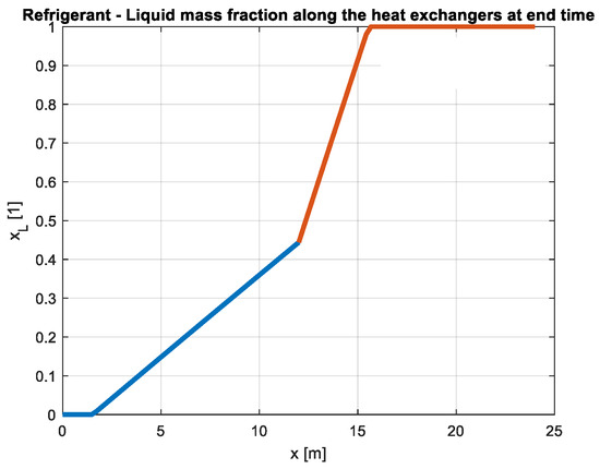 Liquid mass fraction (hybrid system, blue: outdoor unit, orange line: ground).