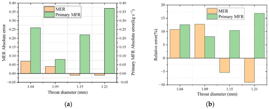 Comparison between the numerical data and experimental results: (a) absolute error; (b) relative error.