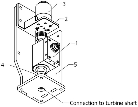Data acquisition system: (1) sensor, (2) motor-to-sensor coupling, (3) motor, (4) sensor-to-turbine coupling, and (5) base sensor.