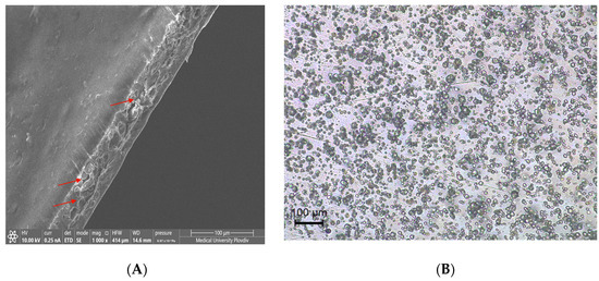 The surfaces of the obtained samples were studied using optical microscopy with a Leica model DM4 P microscope equipped with a Leica digital camera MC190HD (Leica Microsystems CMS GmbH, Wetzlar, Germany). Scanning electron microscopy (SEM) was used to obtain cross-sectional images of the obtained samples at an electron beam energy of 10 kV and 1000× magnification (Prisma E SEM, Thermo Scientific, Waltham, MA, USA).