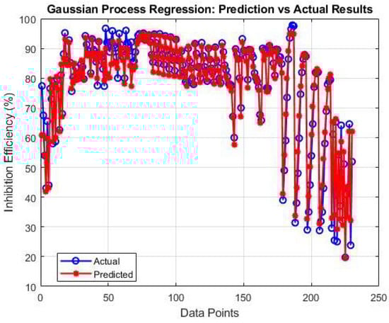 Figure 8 illustrates the GPR algorithm’s performance compared to actual results using the study’s database of 661 samples and 66 features. Figure 8 demonstrates the exceptional performance of Gaussian process regression (R2 = 0.9608). The GPR’s ability to model uncertainty and capture subtle, non-parametric patterns in the data makes it particularly suited to this application.