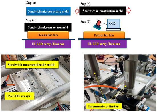 - Nguyen, H.T.; Lee, Y.C. Step and scanning lithography for patterning seamless microstructures on the inner surface of a hollow roller. J. Micromech. Microeng. 2019, 29, 105012. [Google Scholar] [CrossRef]
