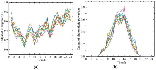 Real renewable energy output data from Xinjiang in China. (a) Output of wind power. (b) Output of photovoltaic power.