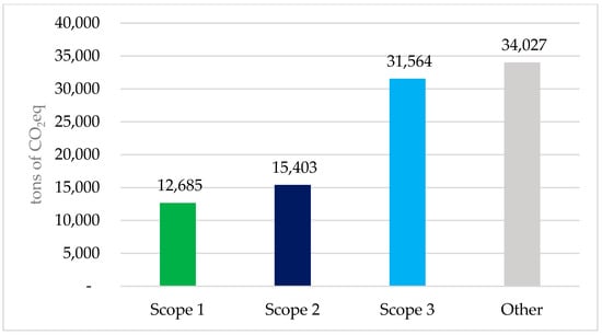 From the proportion of greenhouse gas emissions in Scope 2, the findings indicate that electricity consumption is the only activity contributing to indirect energy-related emissions, totaling 15,403 tons of CO2eq, (Figure 4) which represents 100% of Scope 2 emissions.
