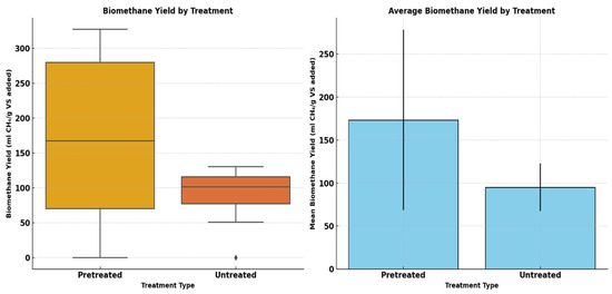 Biomethane yield changes under pre-treatment and no-treatment conditions.