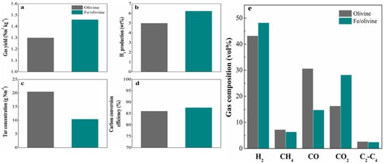 - Khajeh, A.; Masoumi, S.; Wang, L.; Shahbazi, A. Effects of Various Carbon-Supported Iron Catalysts on Tar Removal Efficiency and Syngas Yield during Catalytic Biomass Gasification. J. Env. Chem. Eng. 2023, 11, 110884. [Google Scholar] [CrossRef]