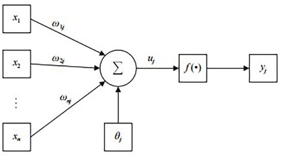 A neural network is a complex network structure constructed by countless basic neurons connected with each other. In Figure 1, a schematic representation of the neuron structure is provided, thereby demonstrating the process of data transmission among neuron nodes. The figure shows that are the input values of the J^{th} neuron; are the weights corresponding to the input values; is the weighted sum of the input values; is the bias of this neuron; and is the output value of this neuron.