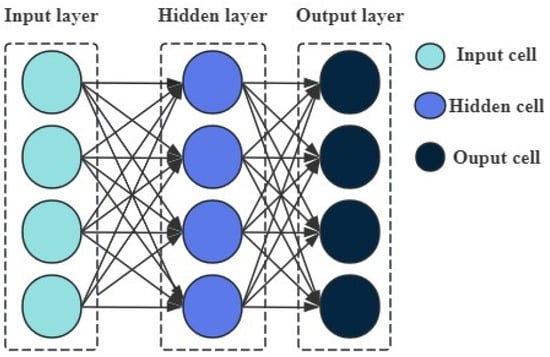 Back propagation (BP) neural networks are neural networks trained by using a back propagation algorithm to learn the mapping relationship between the input data and output data through the training process []. BP neural networks use the gradient descent method to make the change in the weights always improve in the direction of the error becoming smaller, ultimately achieving the minimum error [,,].