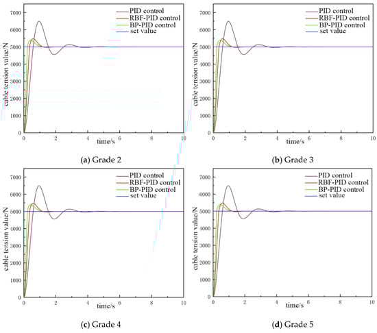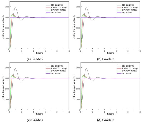 Three cable tension control methods were used from the MATLAB/Simulink simulation, and the results were compared and analyzed. The findings indicate that the PID control system based on the BP neural network demonstrates the most effective performance in achieving the constant tension regulation of the cable. The PID control system based on RBF neural network exhibits suboptimal performance; however, both systems exhibit superior performance in comparison to the conventional PID control system.
