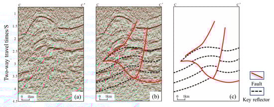 Two key seismic profiles, a–a’ and b–b’, were selected for detailed analysis, providing essential data for the tectonic and sedimentary interpretation. These profiles were described based on their structural characteristics, fault types, and associated sedimentary layers.