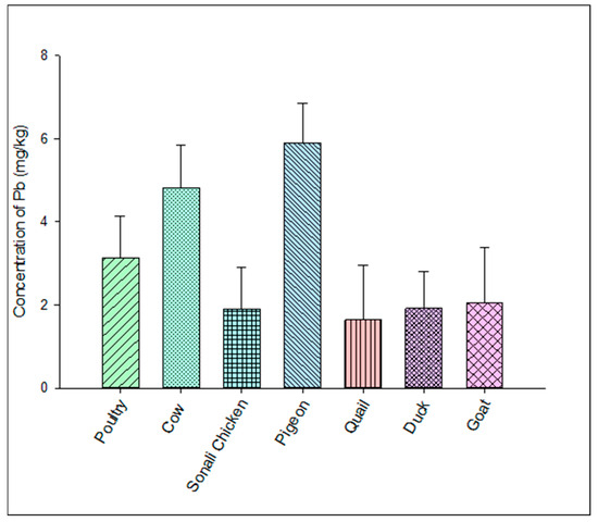 The mean concentration of lead (Pb) in various meat (muscle) sources of Bangladesh, expressed in mg/kg [26].