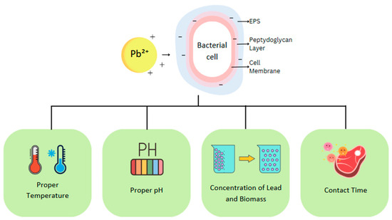 - Biosorption of other heavy metals to the binding sites may lower the adherence of Pb2+ ions.