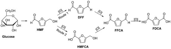 - Rathod, P.V.; Jadhav, V.H. Efficient Method for Synthesis of 2,5-Furandicarboxylic Acid from 5-Hydroxymethylfurfural and Fructose Using Pd/CC Catalyst under Aqueous Conditions. ACS Sustain. Chem. Eng. 2018, 6, 5766–5771. [Google Scholar] [CrossRef]