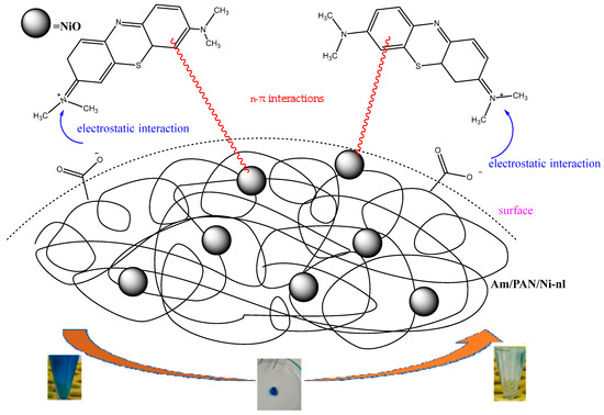 The proposed mechanism for interaction between MB and Am/PAN/Ni-nl.