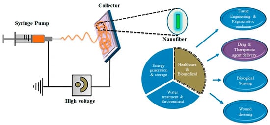 Process of electrospinning, Adapted with permission from Nguyen et al. [].