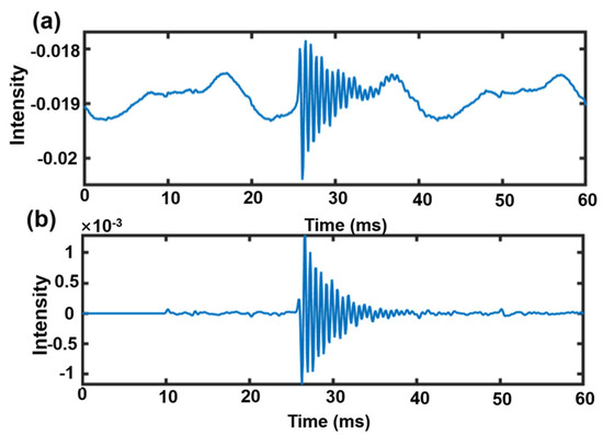 Acoustic signal processing before and after comparison: (a) the original acoustic signal; (b) acoustic signal after noise reduction by IIR band-pass filter.