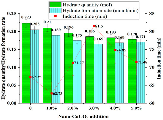 The influence of different amounts of added nano-CaCO3 particles on hydrate formation.