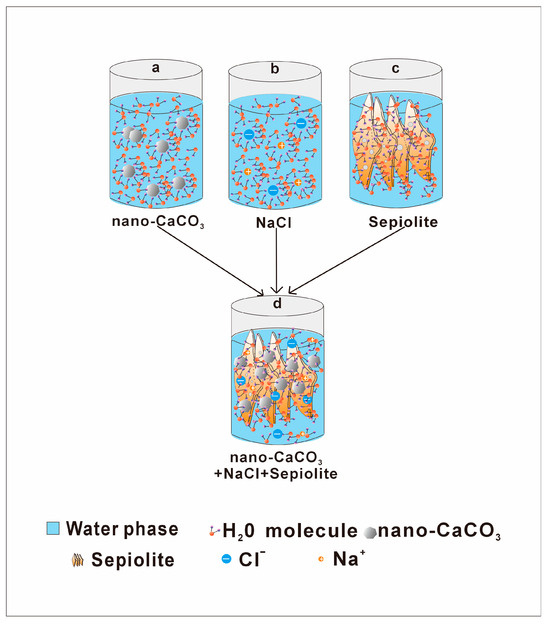 Microscopic mechanism diagram of artificial seawater with 2% sepiolite and nano-CaCO3.