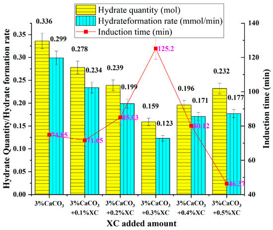 The influence of XC and 3% CaCO3 at different concentrations on hydrate formation.