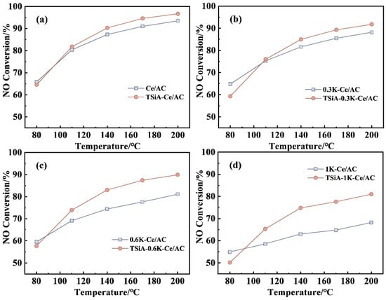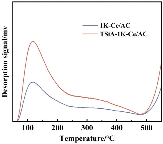 3.4. Possible TSiA-Ce/AC Catalyst Anti-K Poisoning Mechanism