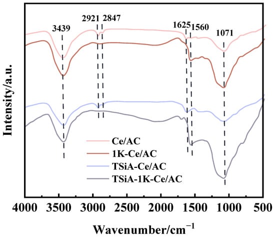 | TSiA-Ce/AC | 72.42 | 11.84 | 0.84 | 0.03 | 8.32 | 6.11 |