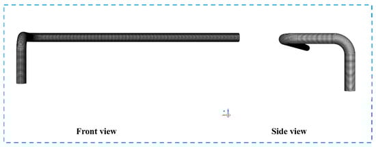 The ICEM software is used to generate hexahedral unstructured mesh for the pipe model, producing 418,424 grid cells. The O-block method is applied at pipe cross-sections, with local mesh refinement in the bend region. Since fluid flow near the pipe wall is in a laminar state, inflation layer refinement is applied near the wall regions. The model mesh distribution is shown in Figure 1 [30].