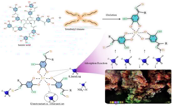 - Lv, L.; Luo, H.; Zhu, G. Characterization and application of titanium tannate (Ti-TA) metallic phenolic network for removal of NH3-N. J. Water Process Eng. 2025, 73, 107703. [Google Scholar] [CrossRef]