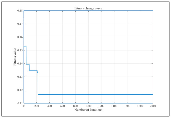 In the formula, represents the normalized value, represents the original value of the sample, represents the minimum original value of the sample, represents the maximum original value of the sample, and m represents the number of samples. As shown in Figure 3, in the MATLAB (Version 2019a) environment, when the population size of the NOA-optimized random forest is set to 30 (population size refers to the total number of individuals searched in parallel in each iteration of the algorithm) and the number of iterations approaches 300, the results stabilize. Therefore, it is sufficient to set the number of iterations to 300.