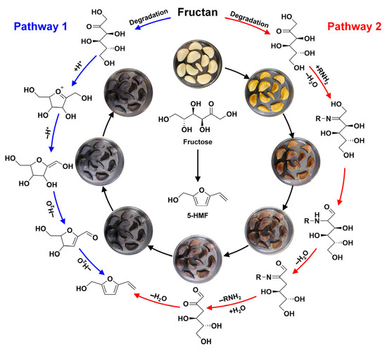 Possible mechanisms of 5-hydroxymethylfurfural (5-HMF) formation in black garlic.