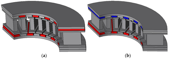 3. Fan, W.; Quan, L.; Zhu, X.; Xu, L.; Fan, D. Electromagnetic Performance Analysis of an Axial Flux Partitioned Stator Hybrid-Excited Less-Rare-Earth PM Synchronous Motor. IEEE Trans. Appl. Supercond. 2020, 30, 5203905. [Google Scholar] [CrossRef]