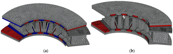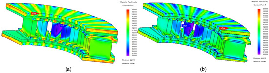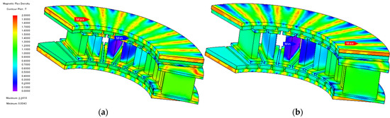 Figure 13. No-load magnetic saturation comparison between the conventional and final models: (a) conventional model; (b) final model.