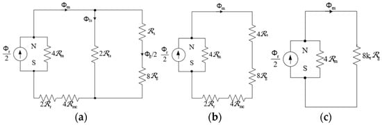Finally, using the fully simplified magnetic equivalent circuit, the magnetic flux m   generated by the permanent magnet can be calculated as follows: