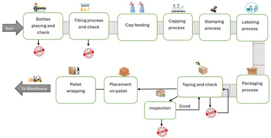 Furthermore, the growing recognition of environmental issues necessitates immediate reductions in the negative impacts caused by manufacturing processes and products. Therefore, production engineers are challenged to enhance the efficiency and productivity of manufacturing processes without attributing negative environmental impacts [17,18,19]. Conceptually, Cleaner Production (CP) seeks to integrate the continuous utilization of preventive environmental approaches to processes, products, and services, aiming to enhance efficiency, minimize negative environmental impacts, and achieve sustainable development goals [20,21]. CP practices collaborate in preserving raw materials and power, ensure the reduction or elimination of toxic materials, and minimize the toxicity of emissions and residues during the production processes [22,23]. Several studies have implemented CP to achieve the environmental goals of manufacturing processes [24,25,26]. Additionally, some studies aimed to enhance quality and reduce carbon emissions [27,28], whereas other studies examined the conceptual relationships between quality improvement techniques [29,30,31,32]. This research focuses on enhancing the OEE components and environmental performance of the technological processes and products of the detergent and soup production lines.