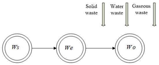 The technological process generates no solid waste. Thus, the waste material unit index, Wo, is calculated from the partial waste indices for the liquid and gaseous wastes as shown in Table 12. For liquid waste, for example, given the volume of water waste is 29,481 m3 (mass = 29,481 tons). The partial waste generation unit index for water waste, woc1, is 8.1778. The relative toxicity (kt = 0.9) and (=0.9) give k of 1.0.