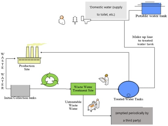 Environmental assessments showed that water waste is the most significant environmental problem. Figure 24 represents the proposed waste treatment system. Water is treated physically, chemically, and biologically to meet a minimum level of quality needed for the process. The treated water passes through pipes back to the production site, while the sludge is collected and emptied periodically.