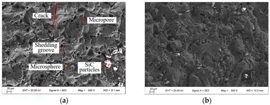 This improvement is mainly due to the triple mechanism of graphene [21]: (1) the “micro-explosion effect of nanoparticles in the discharge gap promotes the expansion of the discharge channel”, resulting in a more uniform distribution of energy; (2) the high thermal conductivity of graphene accelerates the discharging of etching products, and the SEM shows that the microcracks and exfoliation grooves on the surface of the processed surface are reduced (Figure 4); (3) the dispersion of discharge energy reduces local overheating, resulting in the selective etching of the Al substrate, which inhibits the over-oxidation of the Al substrate; (4) dispersing the discharge energy, reducing the selective etching of Al substrate caused by local overheating, and suppressing the excessive oxidation of Al substrate.