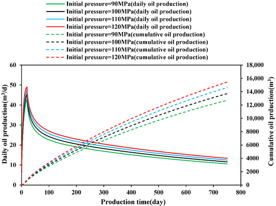 Effect of initial pressure on the daily production and cumulative production of UDCR oil wells.