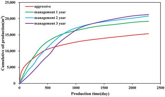 Effect of management time on the daily production and cumulative production of UDCR oil wells.