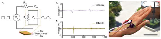 - Zhang, X.; Yang, W.; Zhang, H.; Xie, M.; Duana, X. PEDOT:PSS: From conductive polymers to sensors. Nanotechnol. Precis. Eng. 2021, 4, 045004. [Google Scholar] [CrossRef]