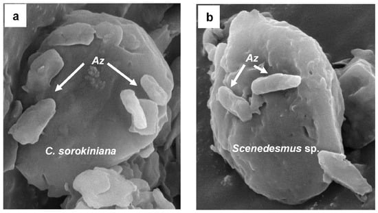| C. sorokiniana—Az | 0.12 ± 0.1 a | 0.21 ± 0.04 a | 0.14 ± 0.02 a | 0.16 ± 0.02 a | 0.16 ± 0.03 a | 0.23 ± 0.03 a |